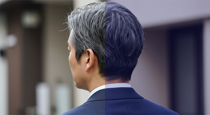 染めずに白髪を自然にぼかす ― ブルーの補色効果