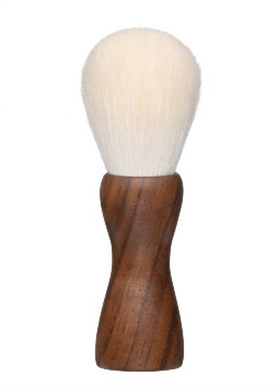 ホテルの内装や高級家具にも使われる重厚な木材。深みのある濃茶色の木目が高級感を漂わせます。ナチュラルタイプに比べやや重みがあり、手に安定感が生まれるため、男性理容師様や男性シェービングにぴったりです。全長109mm、毛の長さ49mm、毛軸直径20.4mm、毛量:約52,000本。木製柄には、防カビ・撥水加工が施されているため、水分や湿気による劣化を防ぎ、清潔に長くお使いいただけます。