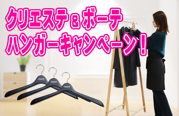 【数量限定】クリエステ&クリエステボーテ オリジナルハンガープレゼントキャンペーン予約開始!