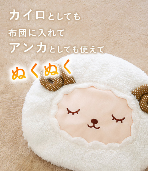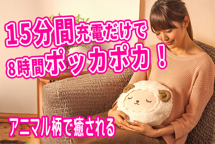 カバー越しにじんわり伝わる温もりと、まるで動物を抱きしめているようなやさしい温かさ。膝の上に乗せてカイロとして使ったり、布団の中でアンカとして使ったり、湯たんぽの上に足を乗せてコタツ代わりに足先を暖めたりすることも可能。それも蓄熱時間15分、電気代は1回2.8円というエコタイプ充電を採用!