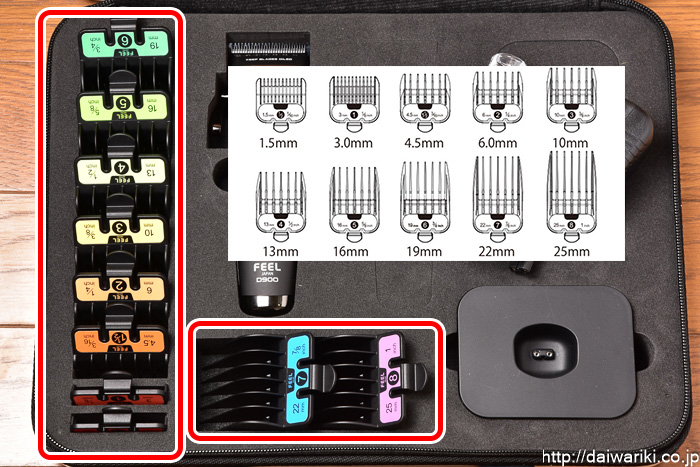 1.5〜25mmまで10種類のアタッチメント付属。スタイルの幅が広がり、質感のコントロールも自由自在。