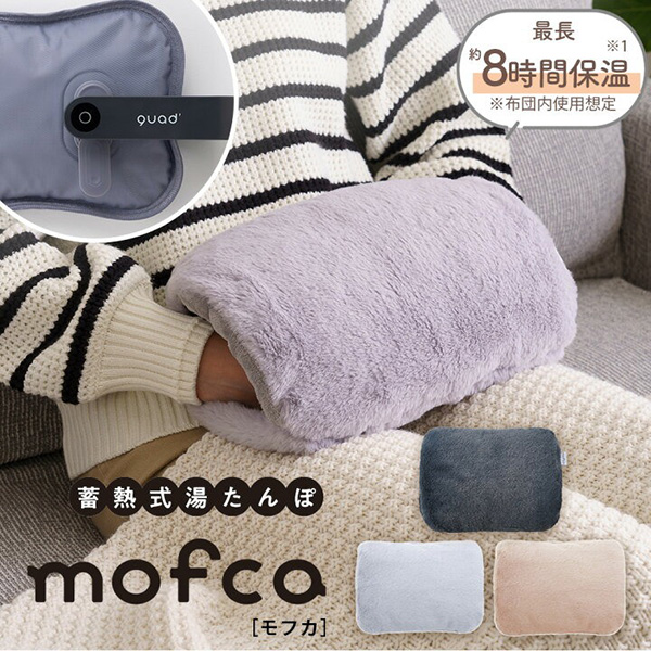 《mofca》最大の魅力は、お湯の入れ替え不要・10分蓄熱・長時間保温という手軽さと、「布団の湯たんぽ」のようなやさしい温度感。ひざ掛けだけでは補えない“冷え”に自然に寄り添います。