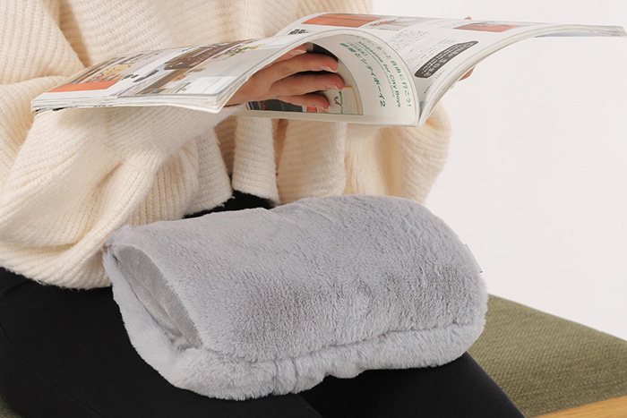 手先を温めやすく、雑誌・タブレットを見る際にも使いやすい形状。自然な姿勢で使ってもらえます。