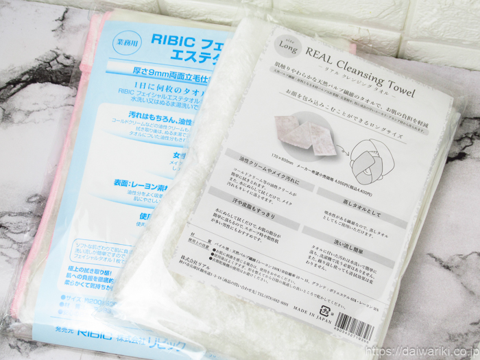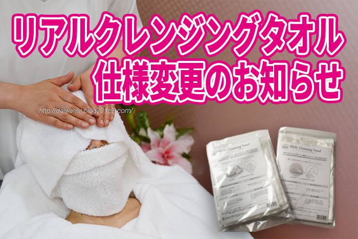 2025年12月11日時点で、リアルクレンジングタオル大は旧タオルは在庫終了でリニューアル品を出荷開始しました。また、リアルクレンジングタオル小は在庫ある限りでリニューアル品へ切り替えになります。