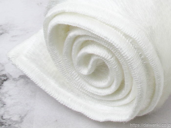 今回リニューアルされた《クレンジングタオルW(L)》は、従来のやわらかさを維持しつつ、耐久性と厚みが向上した仕様に切り替わりました。
