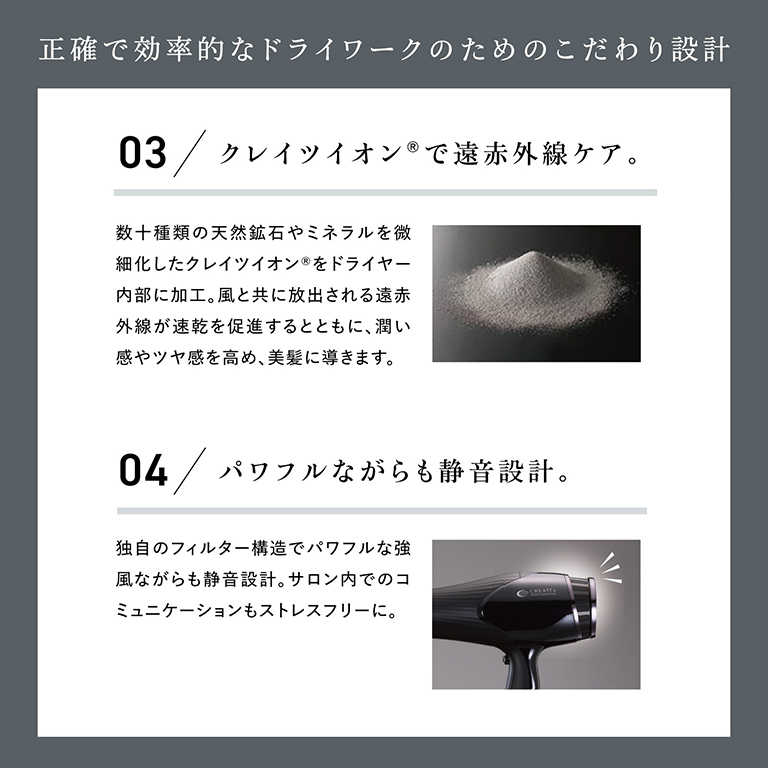 クレイツ マイスター ドライは、風量だけに頼らず、風と熱のバランス設計によってドライ後のベースが安定しやすい点が特徴です。