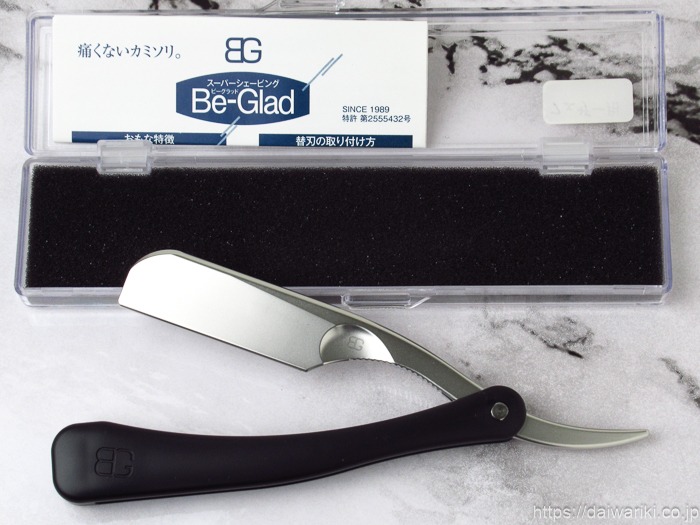 ビーグラッドは、1989年の発売以来「痛くないカミソリ」としての地位を確立してきました。独自の形状と理論で特許を取得しており、その剃り心地はお客様から「まるでスプーンの裏でお肌を優しく撫でられているよう」と評されるほどです。新しい刃でも1人目から痛みがなく、剃った後の赤みやヒリつきが出にくい点も、多くのプロに選ばれる理由です。
