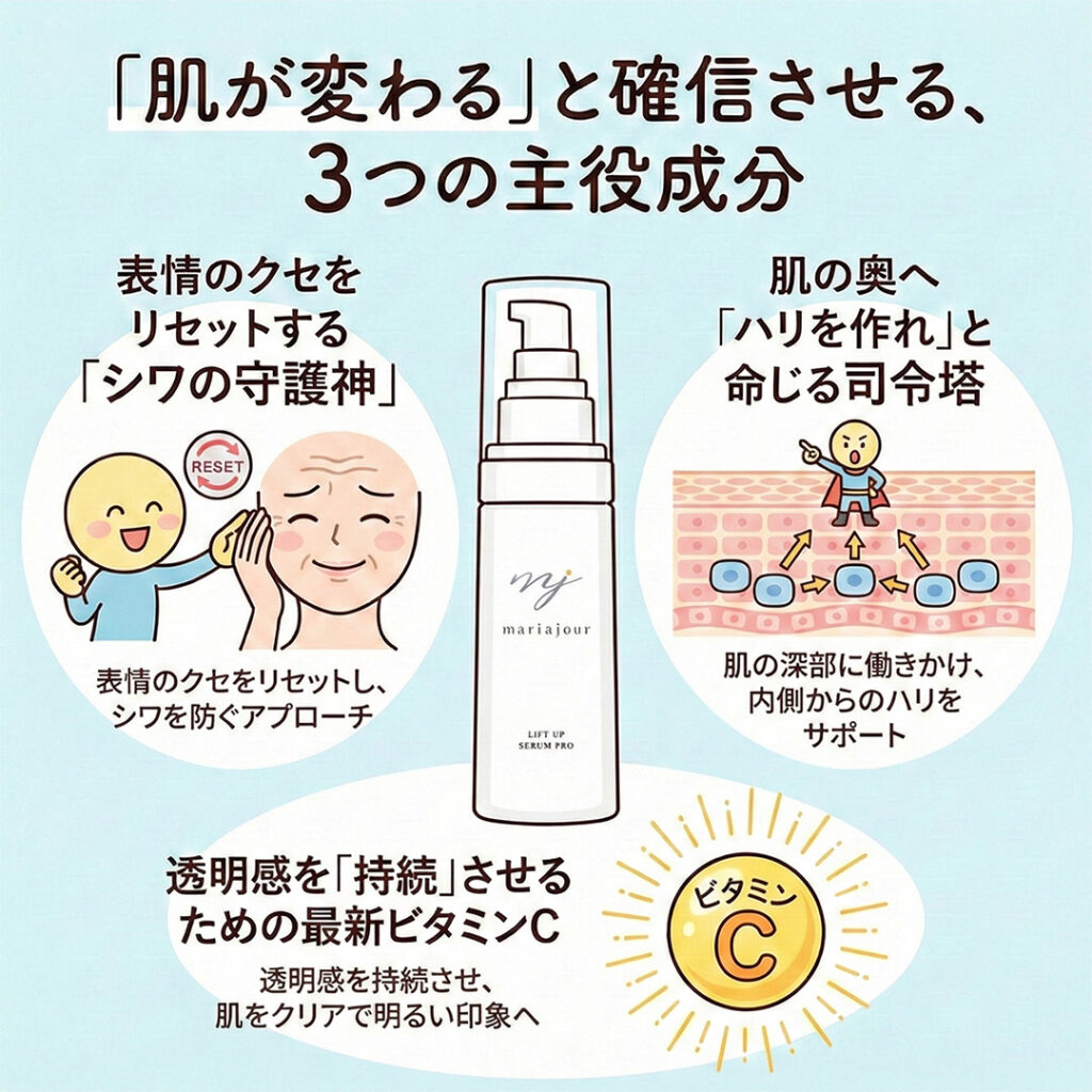 これまで「保湿して終わり」だった仕上げを、「顔立ちの印象を管理する」ステップへと進化させるのが、今回ご紹介する「マリアジュール リフトアップセラム PRO」です。