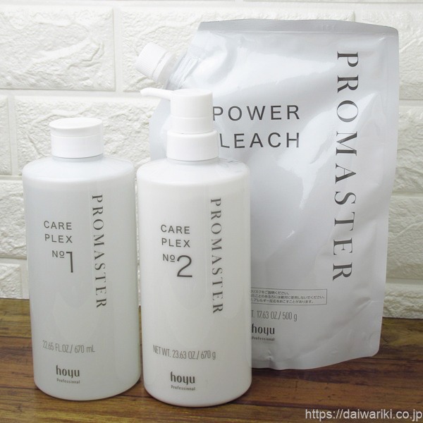 ブリーチ1個に「プロ仕様のケア剤」が2本付いてくる。前代未聞のセット内容。