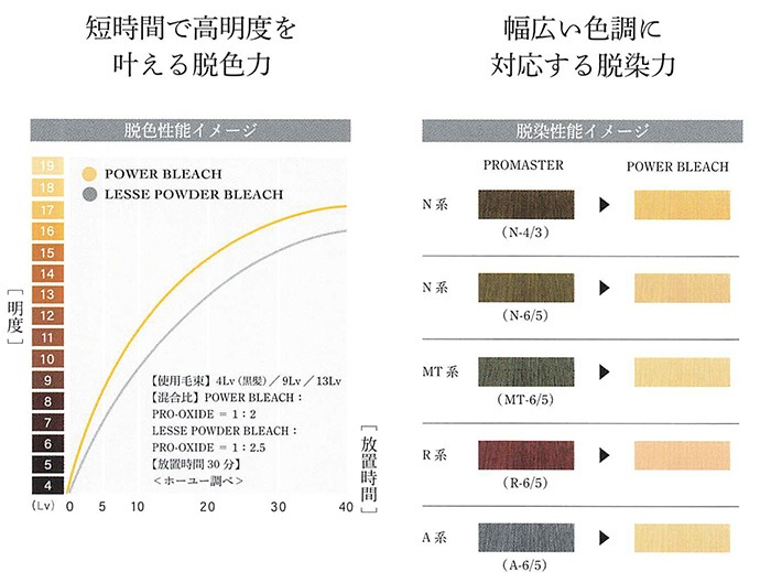 高い脱色力を誇り、短時間で希望の明度まで一気にリフトアップします。放置時間を短縮できることは、お客様の負担を減らすだけでなく、サロン全体の回転率を高める「最大の武器」になります。