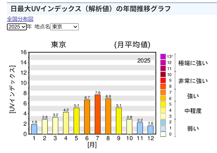 気象庁が発表している東京のUVインデックス(紫外線の強さ)を見ると、真冬を除けば3月から10月までは、日焼け止めや帽子の使用が推奨される「3」以上の数値を示しています。つまり、3月はまさに「UVケアの始めどき」なのです。お客様の大切な肌を老化から守るために、この時期からの適切なケアをご提案していきましょう。